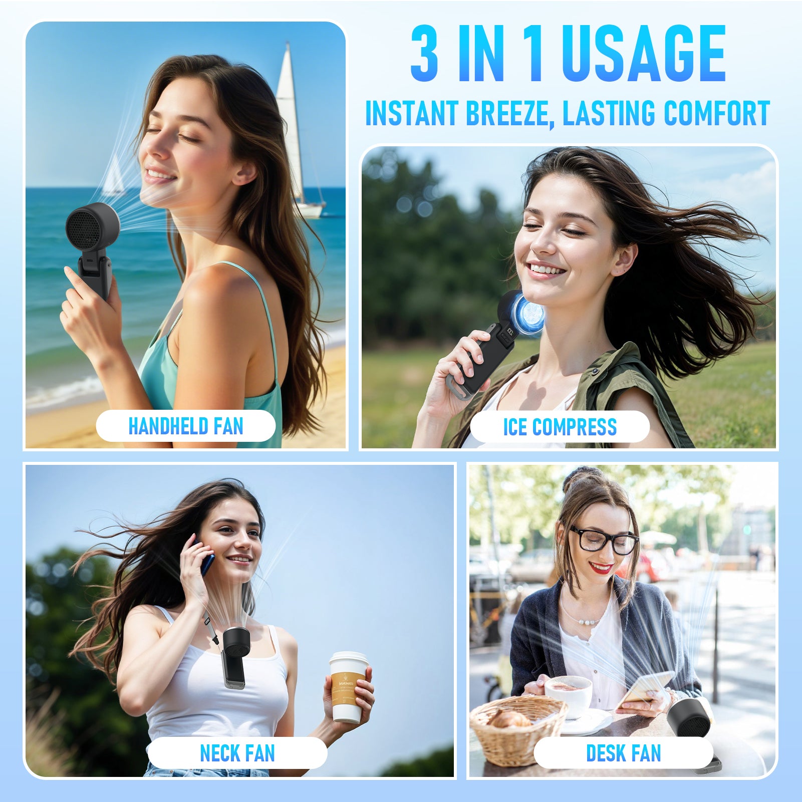 - 12H Max Cooling Time – Rechargeable portable handheld fan delivers up to 12 hours of continuous breeze. Fully recharges in 3 hours via fast Type-C charging. Adjustable wind speeds let you enjoy 3-12 hours long-lasting comfort anytime and anywhere.